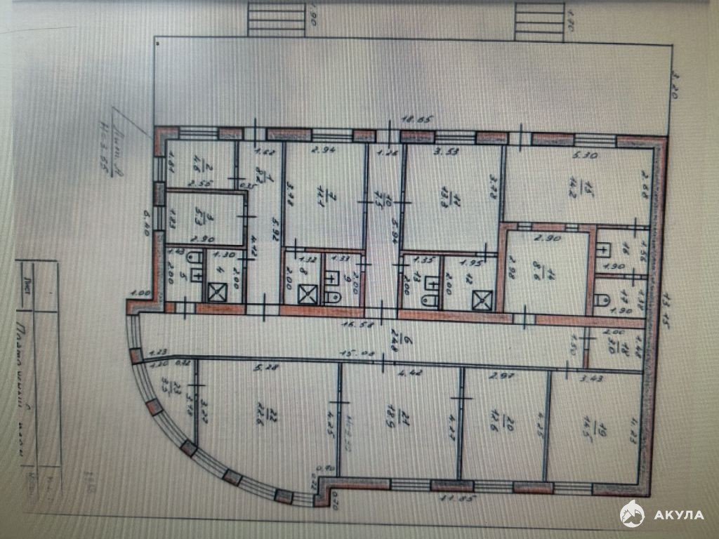 Планировка помещений каждый этаж по 1200 кв.м. на первом этаже арендует супермаркет Светофор, на втором этаже производственное предприятие, третий этаж офисные помещения.