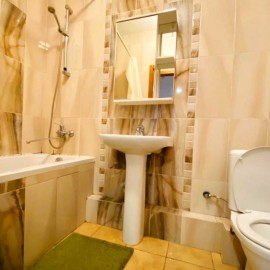 Есть все для комфортного проживания: диван, встроенный шкаф-купе с большим зеркалом, телевизор, письменный стол; Так же вся необходимая бытовая техника: плита, холодильник, чайник, стиральная машина, утюг, фен. Расположение дома очень хорошее, буквально вся...