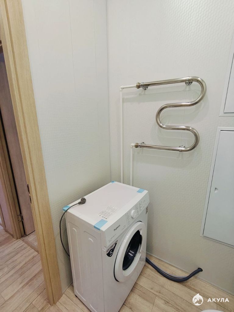 В квартире стиральная машина, холодильник диван, шкаф, обеденный стол.