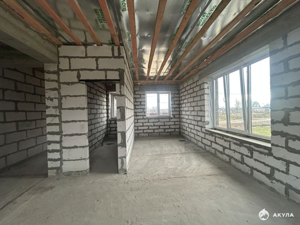 Дом построен из газосиликатных блоков, утеплитель, облицовка кирпич, фундамент - свайно-ростверковый, плиты перекрытия, окна-трехкамерные стеклопакеты, профиль 70 мм, крыша перекрыта металлочерепицей. На этаже большая кухня совмещенная с гостиной, санузел, бойлерная.