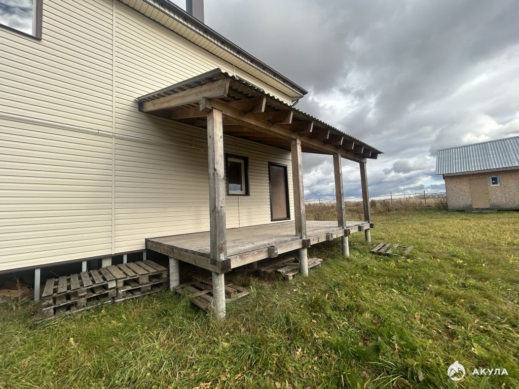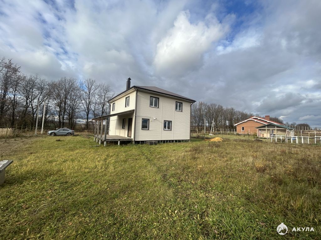 Современный дом новой постройки 2-х этажный . Общая площадь - 166 кв.м. Земельный участок 12 соток, отмежеван, огорожен забором, благоустроен, установлены откатные ворота. Дом построен из OSB панелей, фундамент свайный, крыша перекрыта металлопрофилем. На первом этаже кухня, просторная гостиная, комната, гардеробная, холл, раздельный санузел, бойлерная. На втором этаже 4 раздельные комнаты и санузел. К дому пристроена просторная терраса.