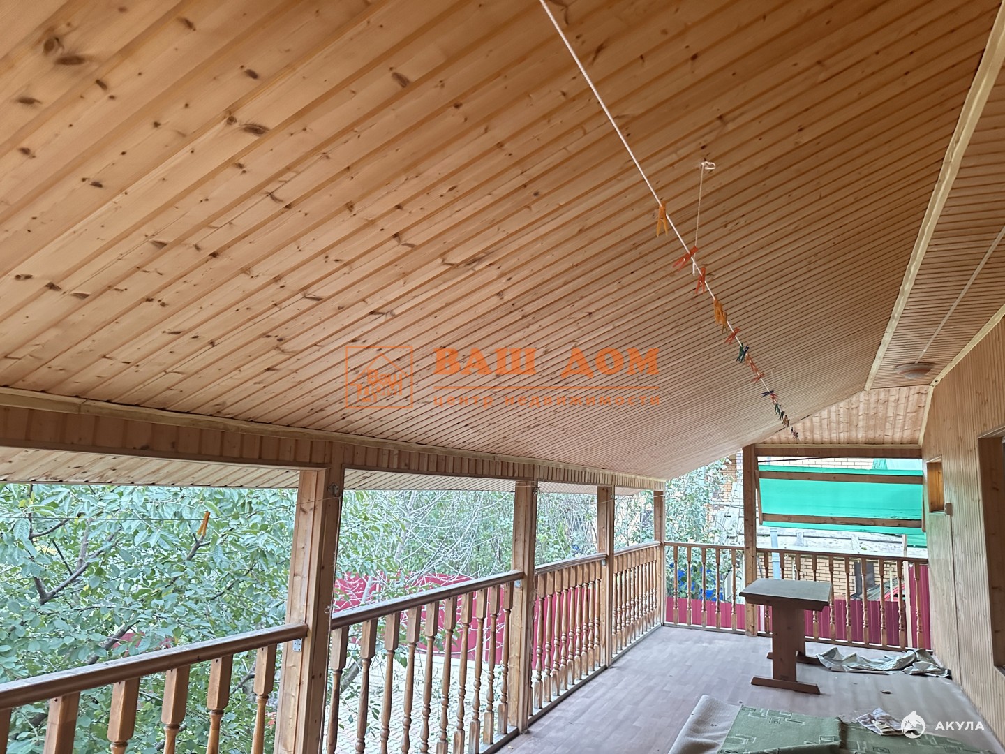 Из дома есть выход на уютную веранду .