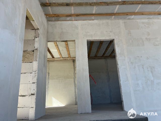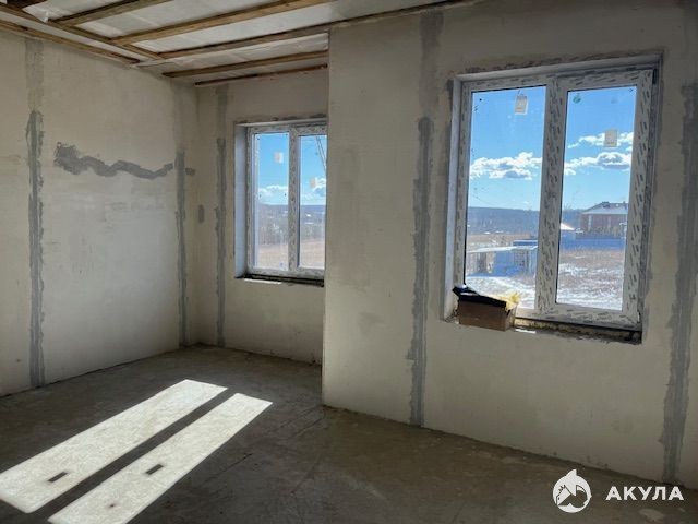 На втором этаже: 3 спальни, санузел, холл. Панорамные окна. Фундамент ленточный на сваях, крыша металлочерепица, короед. Дом под предчистовую отделку. Теплый пол 1-й. 2-й этаж. Двухконтурный котел. Пластиковые окна RЕНАU, ламинированные, тройной стеклопакет.
