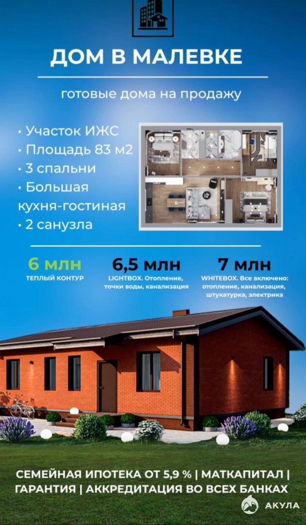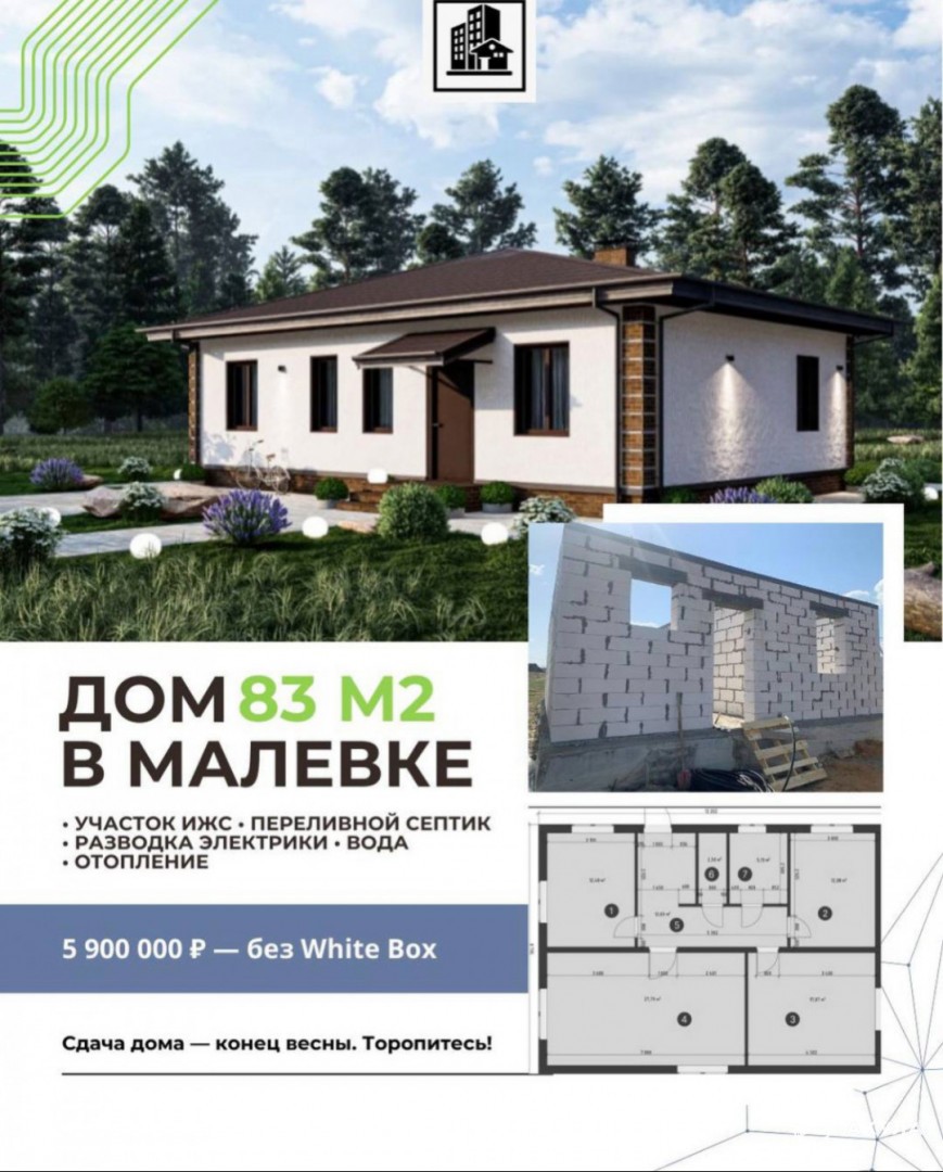 ПРОДАЕТЬСЯ готовый ДОМ В Д. МАЛЕВКА. 83 КВ М. НА УЧАСТКЕ 5 СОТОК. В белой штукатурке. 10 мин. до центра Тулы, ТРАНСПОРТНАЯ ДОСТУПНОСТЬ.