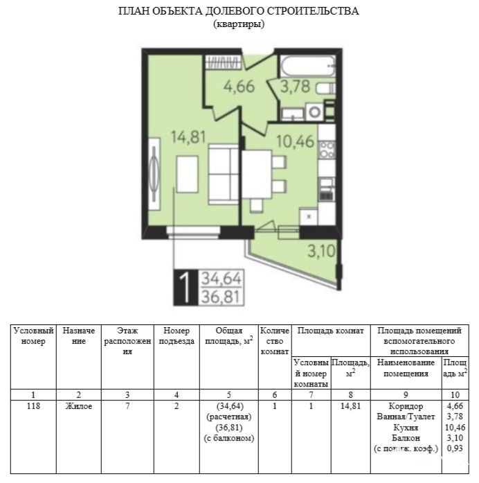 1-комнатная квартира на 7-м этаже 8-этажного монолитно-кирпичного дома.
