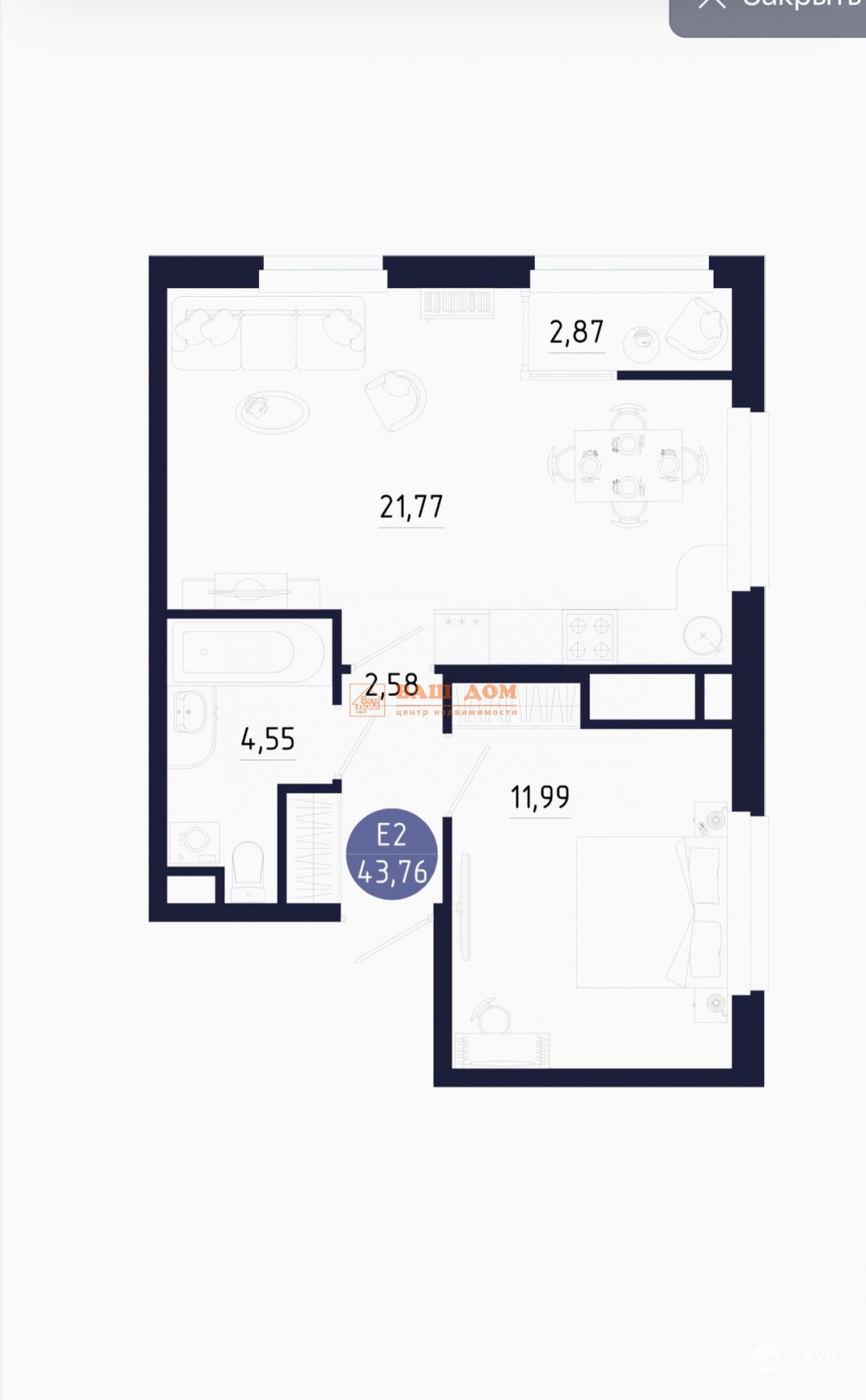 - 21.77 м²