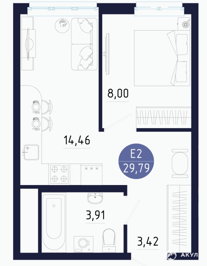 - 14.46 м²