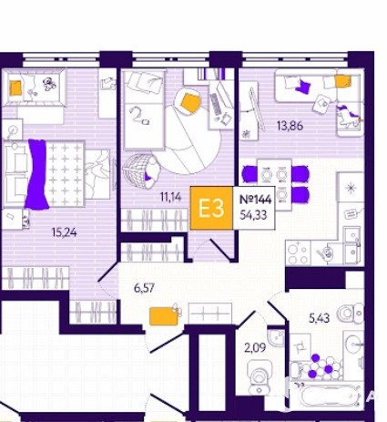 Продается ОТ ЗАСТРОЙЩИКА отличная евро 3 - 54, 33 кв. м., в ЖК ВСЕ И СРАЗУ.