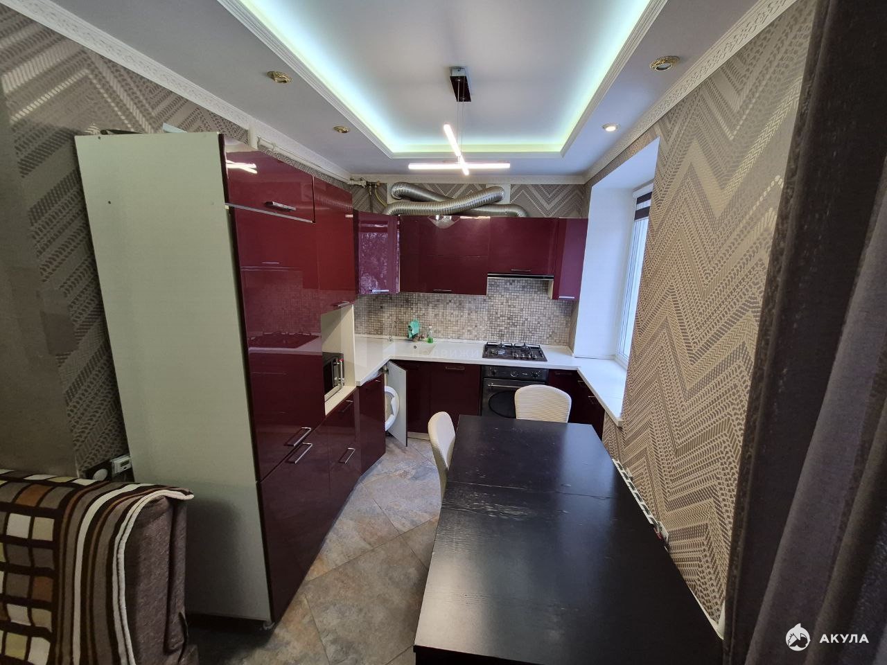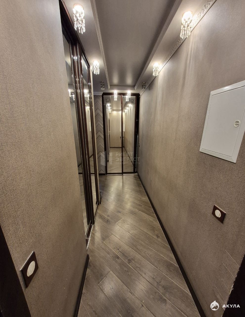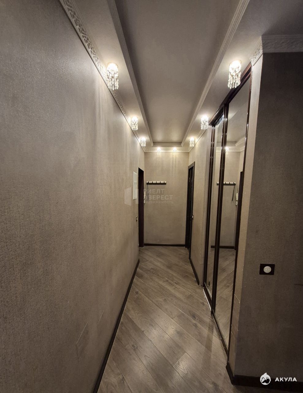дополнительные элементы: двухуровневые потолки со светодиодной лентой, тройные стеклопакеты, видеонаблюдение, сейф в стене, новая электропроводка.