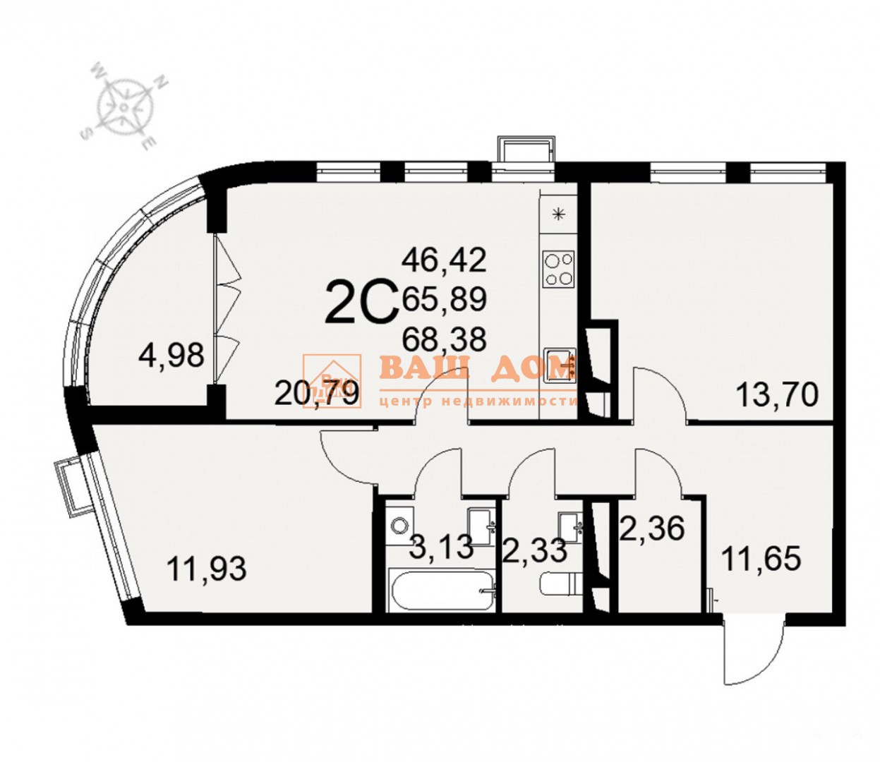 - 68 м²