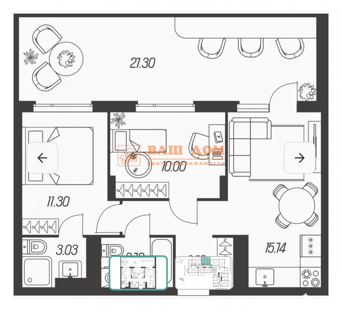 - 21.3 м²