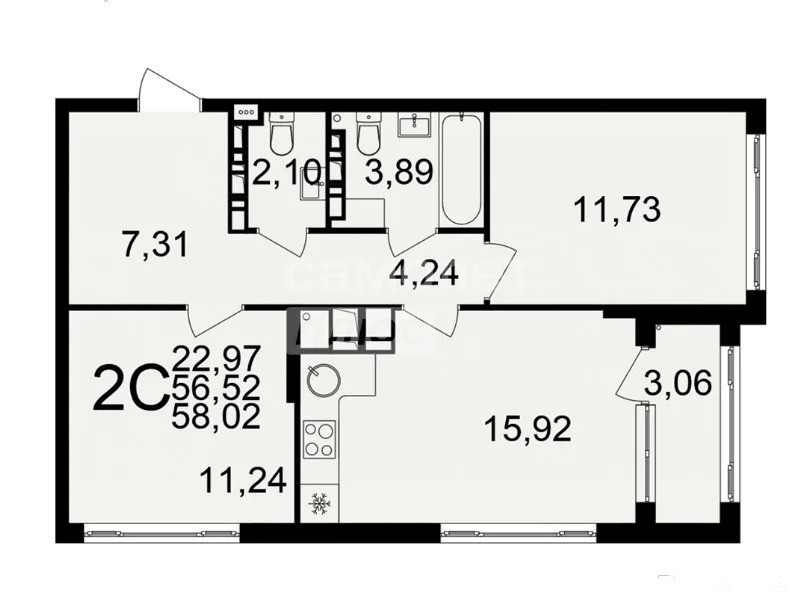 - 58 м²