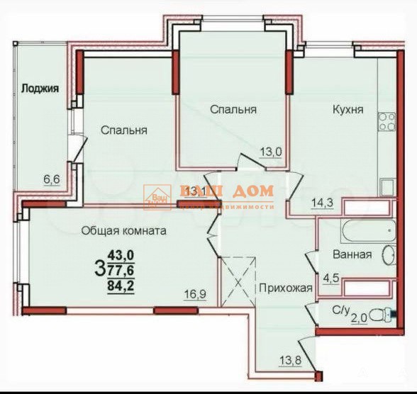 - 14.3 м²