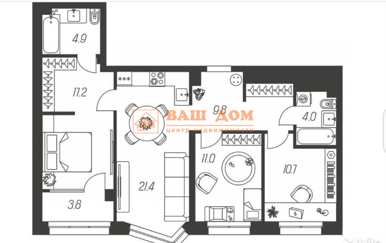 Сдача дома в 2026 году. Общая площадь квартиры 82.8 кВ. м. в которой просторная кухня-гостиная, два санузла, три раздельные комнаты и гардеробная.