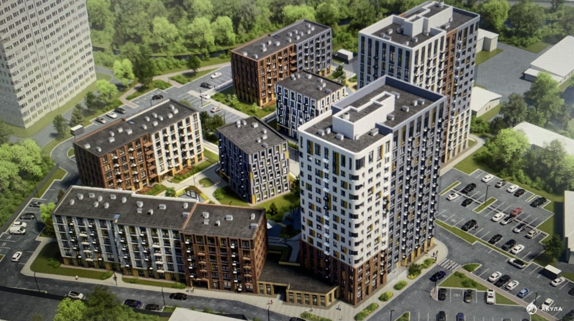Необычная каскадная застройка комплекса спроектирован таким образом, что из окон открывается потрясающий вид на город и прекрасное благоустройство жилого квартала.