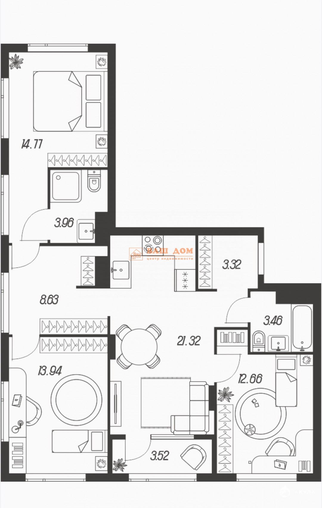 - 21.32 м²