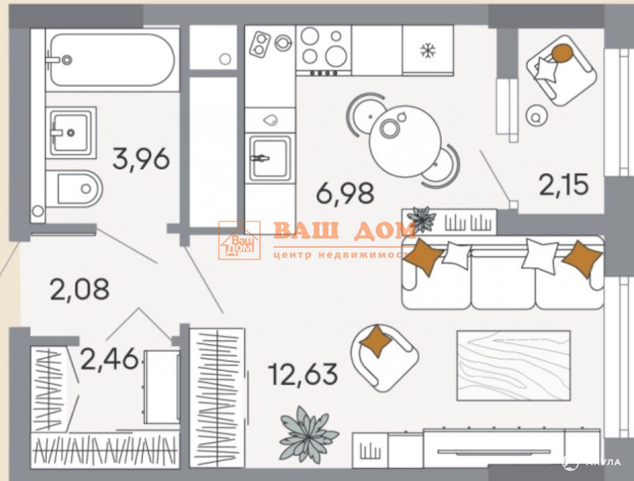- 12.63 м²