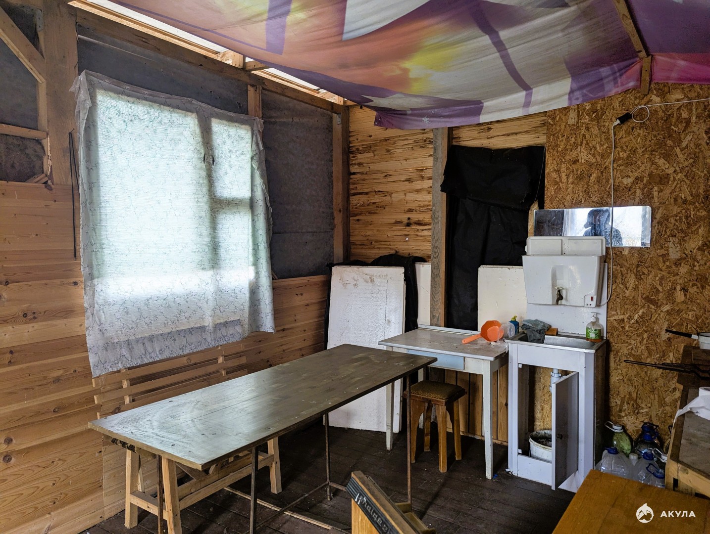 На участке расположен дом заводского изготовления, площадью 39 м2, заводского изготовления. Построен в 2012 году. В доме 2 комнаты (на первом этаже и на мансарде) и просторная кухня - веранда.