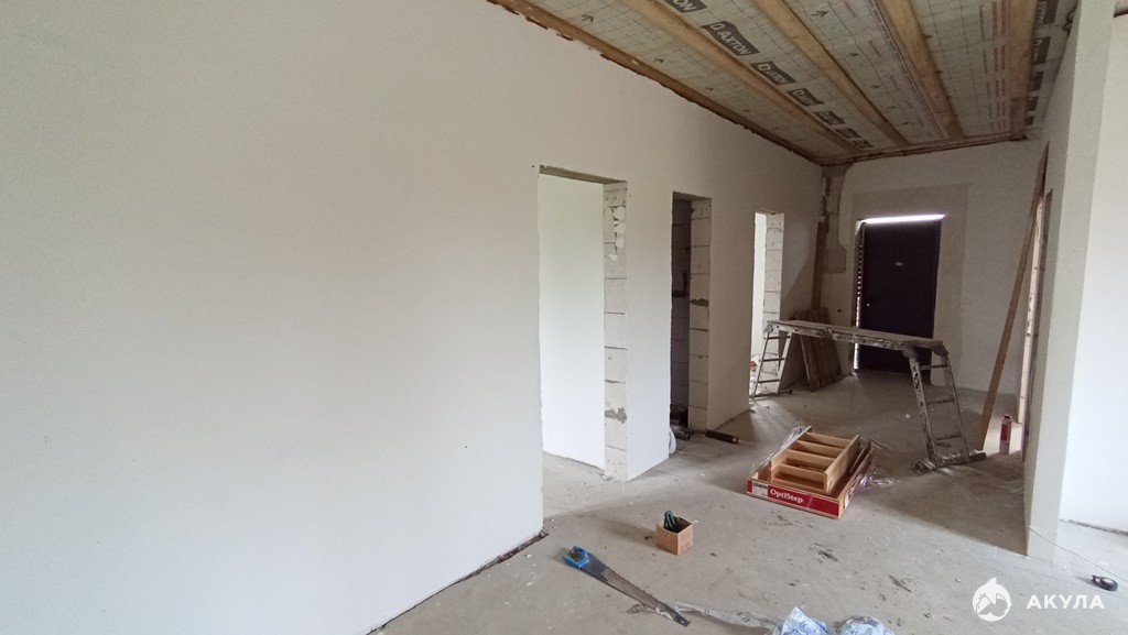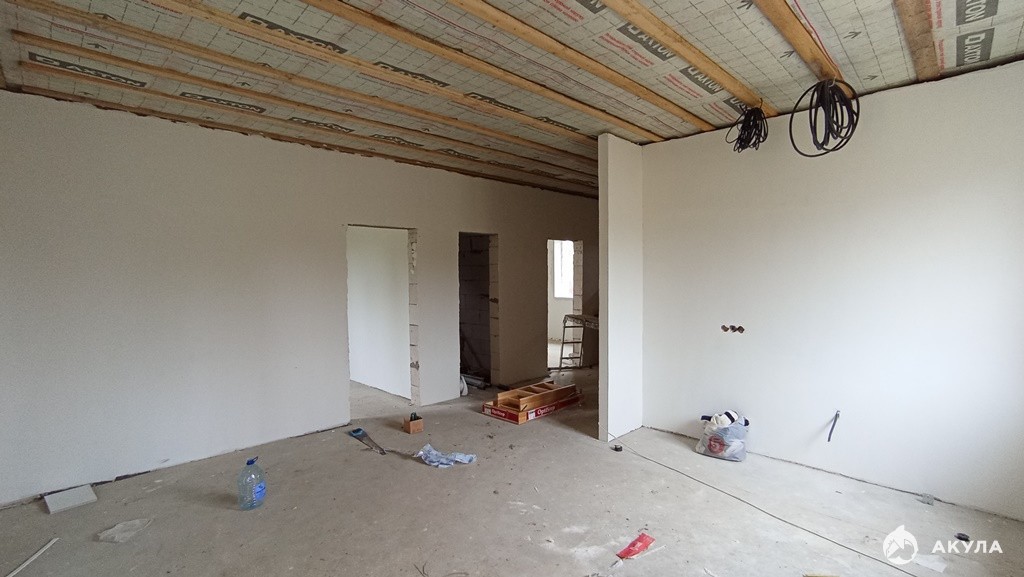 Продаётся новый дом с участком (7 соток) от застройщика. Электричество, вода-скважина, септик. Планируется газификация. Электрический котёл. Предчистовая отделка ( оштукатурены и ошпаклёваны стены, откосы и подоконники на окнах, разводка электричества по дому). Тёплый пол. Вся система отопления подходит для подключения газового котла. Хорошая входная дверь.