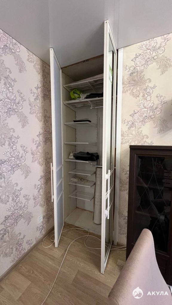 В комнате-раскладной диван, телевизор, места для хранения одежды в гардеробной.