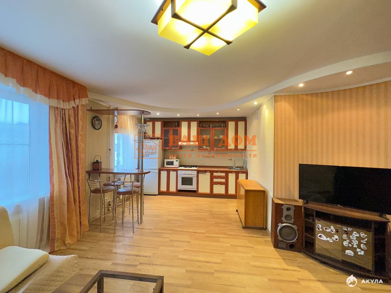 Большая кухня-гостиная и две спальни.