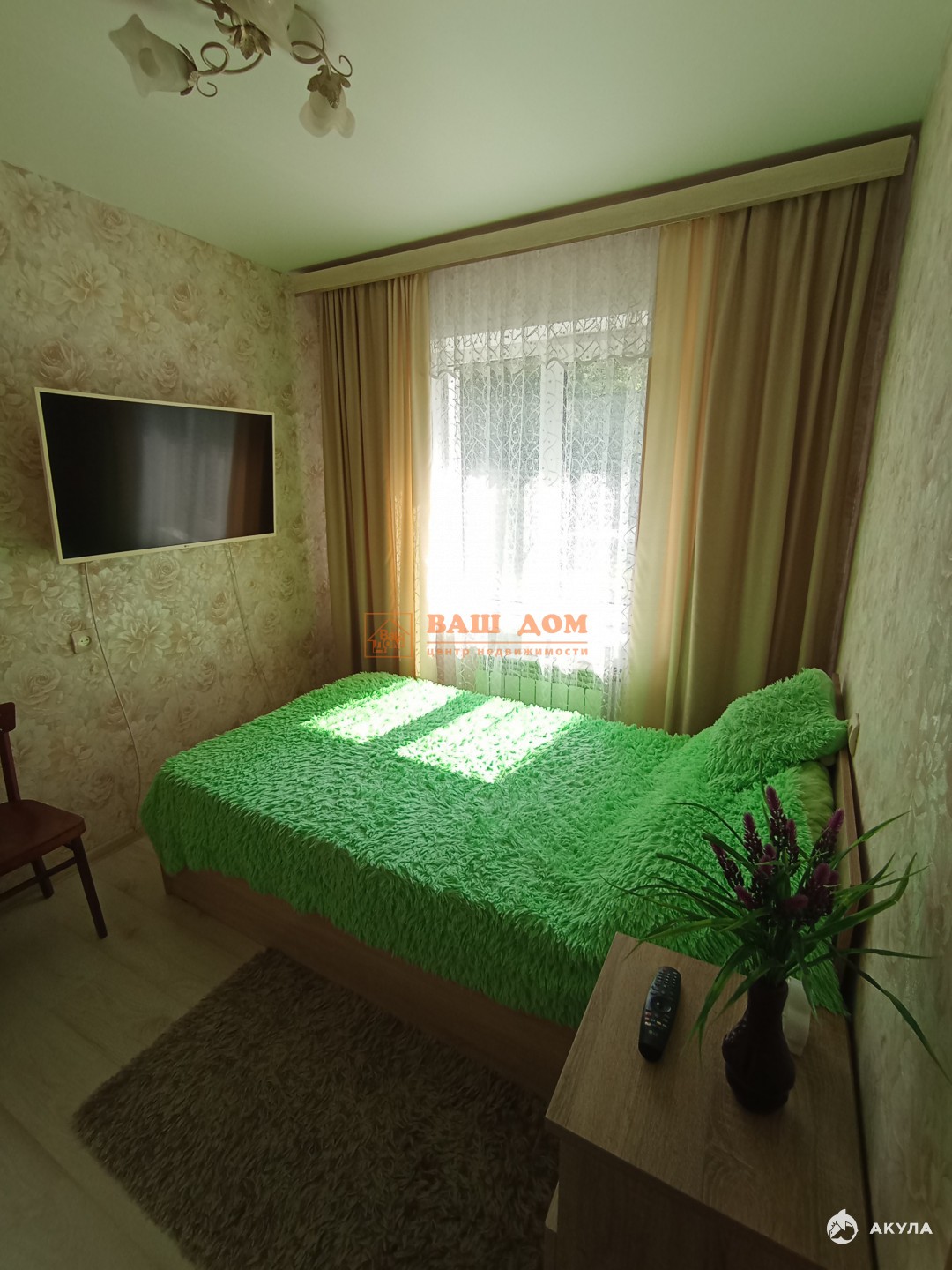 В квартире есть все необходимое для жизни. Кровать в спальне размер 120 см! Нет двери между комнатой и залом. В стоимость входит оплата телевидения на 2 телевизора. Проживание без маленьких детей и животных.