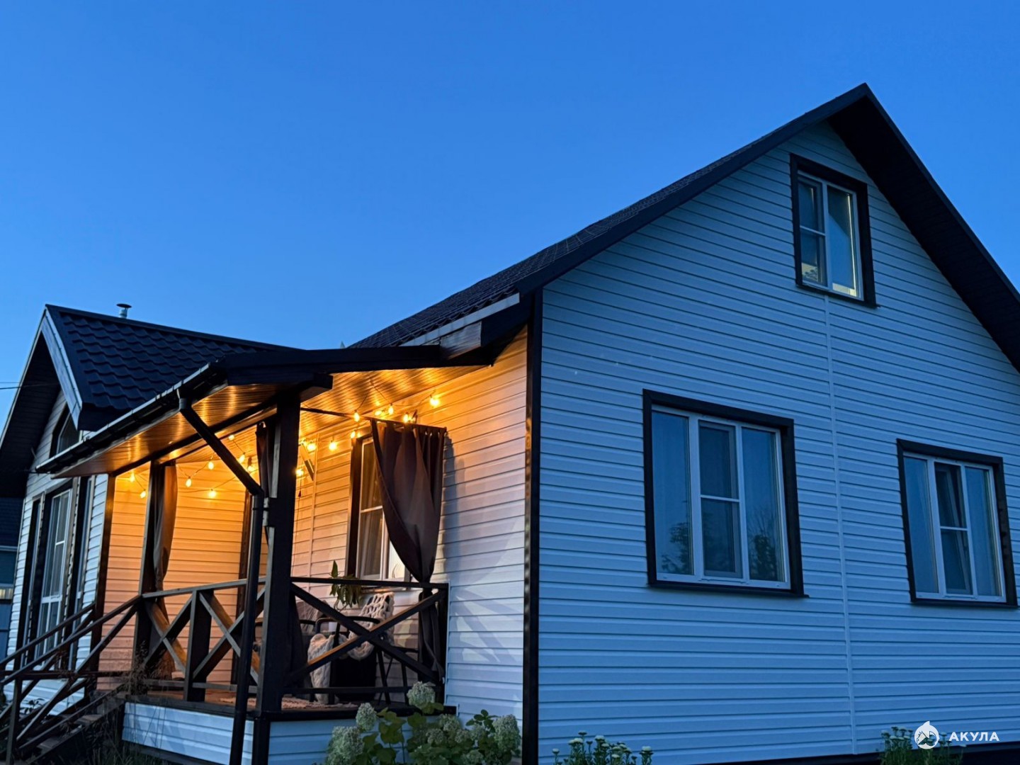Предлагаю купить жилой дом в Заокском районе Тульской области, д. Александровка, 2022 года постройки. Дом каркасный на свайно-винтовом фундаменте, общая площадь 93, 2 м2. Отделка цоколя «под кирпич». Утепление стен и крышы 150 мм, пол 200 мм. Крыша металлочерепица, внешняя отделка дома-сайдинг. Окна пластиковые двухкамерные с москитными сетками. Водопровод центральный с греющим кабелем, фильтр на входе воды в дом, бойлер, электричество 15 кВт, канализация – переливной септик. Потолки натяжные, кроме гостиной и второго этажа, стены и, частично, потолки отделаны имитацией бруса, окрашенного краской Тиккурила. Пол-ламинат, входная часть в коридоре и санузле -линолеум. Панорамное окно в гостиной, печь-камин Бавария-ЭКО. Отопление электрическое панелями Silinom с регулировкой температуры в каждой комнате, коридор, санузел и 2-й этаж-электрические конвекторы. В 100 метрах построена ГРП, возможно бесплатное подведение газа до участка. Межкомнатные двери МДФ.